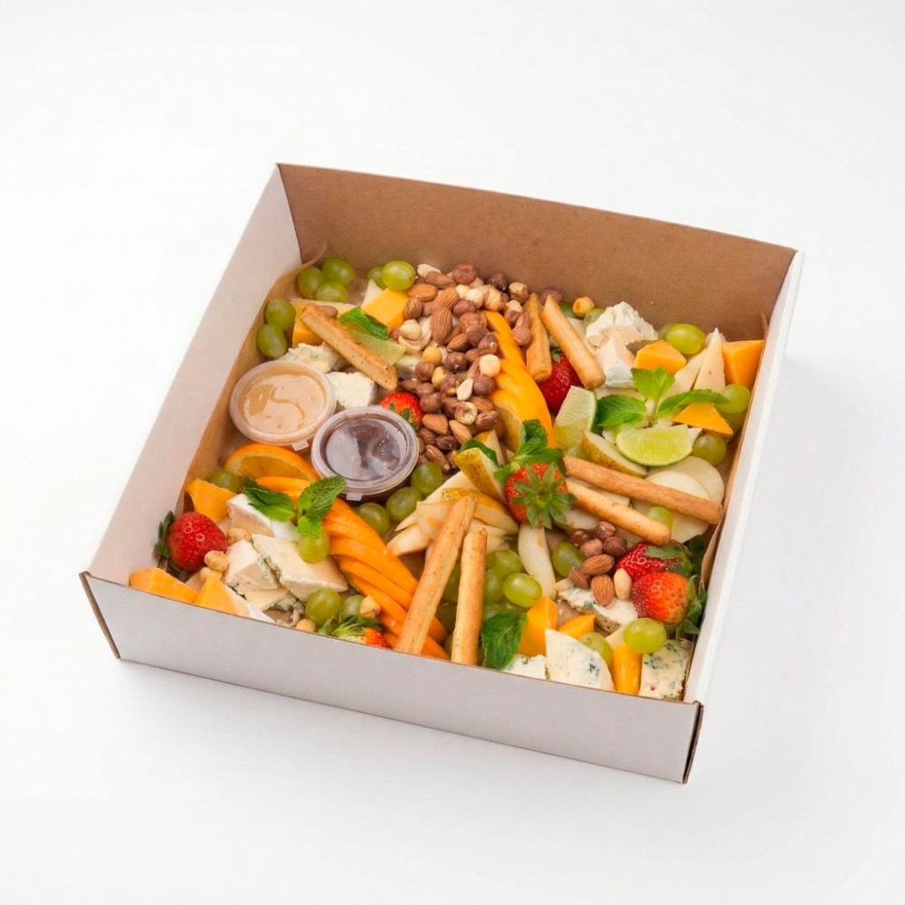 Бокс «К Вину» — продуманное сырное ассорти от AVOBOX для идеальной дегустации. Четыре классики с разной текстурой и характером: нежный Маасдам и сливочный Чеддер, выразительная Грана Падано и пикантный Дор Блю. Сыры выкладываются в рекомендуемой последовательности — от мягких нот к более насыщенным. Композицию дополняют виноград, дольки апельсина и груши, грецкий орех, мёд, абрикосовый джем и свежая мята — гармоничные пары к сырам и винам. Формат подходит для корпоративов, дружеских вечеринок и пикников, делая сервировку «по‑ресторанному» дома или в офисе.