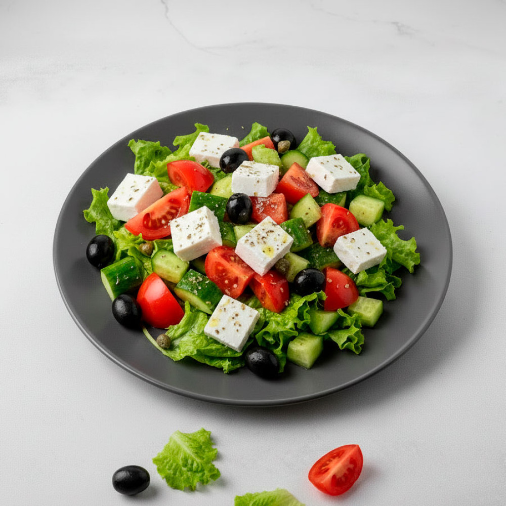 Свежий и яркий «Греческий» в современном исполнении: смесь листьев Айсберг и Ромэн даёт плотный хруст, огурец и томат — сочность, болгарский перец — сладость и аромат. Сыр фета и маслины добавляют насыщенности, а соус Песто в соуснике соединяет ингредиенты травянистой базиликовой нотой. Идеален для лёгкого обеда, ужина и фуршетной подачи.